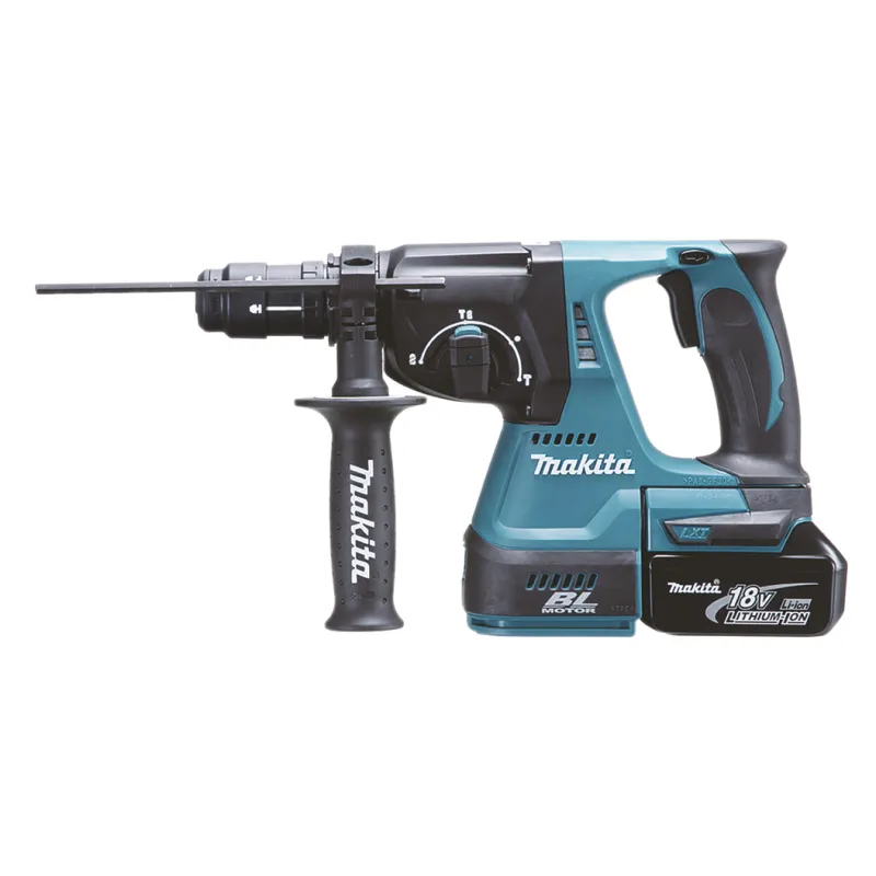 Perceuse à percussion 18 V équipée d'un moteur sans balais haute performance et d'un mandrin à dégagement rapide pour forets SDS-Plus compatibles. Énergie d'impact de 2,0 J. 3 fonctions : rotation, percussion, rotation + percussion. La fonction de marche arrière, simple d'utilisation, permet de percer dans les deux sens. Le burin est orientable sur 40°. Un système d'aspiration des poussières intégré préserve la propreté de la zone de travail et la santé de l'utilisateur. La batterie est fixée à l'outil par un support en caoutchouc pour réduire les vibrations. Le système XPT permet une utilisation en environnements poussiéreux et humides. Fournie avec deux batteries 5,0 Ah BL1850B, un chargeur rapide DC18RC (45 minutes) et une mallette Makpac type 4 (821552-6). Accessoires fournis : poignée latérale, jauge de profondeur, mandrin à dégagement rapide.